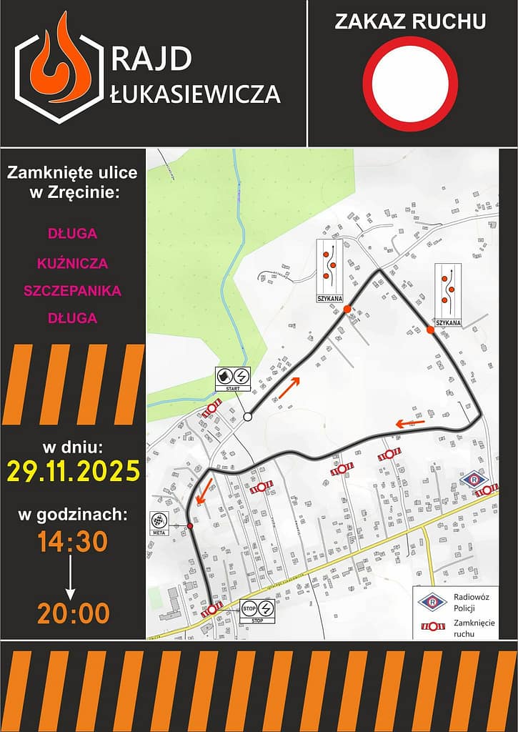 W najbliższą sobotę, 29 listopada 2025 roku, nasza gmina, w tym bezpośrednio Zręcin, stanie się areną sportowej rywalizacji podczas Rajdu Łukasiewicza. Choć jest to ekscytujące wydarzenie motoryzacyjne, oznacza ono również poważne utrudnienia w ruchu drogowym na wyznaczonych odcinkach specjalnych.